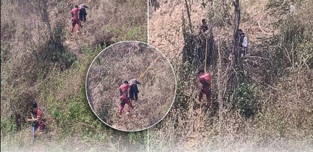 Nagsagawa ng rescue operation ang Bontoc Municipal Police Station katuwang ang mga criminology interns. Gumamit ng rappelling technique ang rescuers para marating ang kinaroroonan ng mga menor.