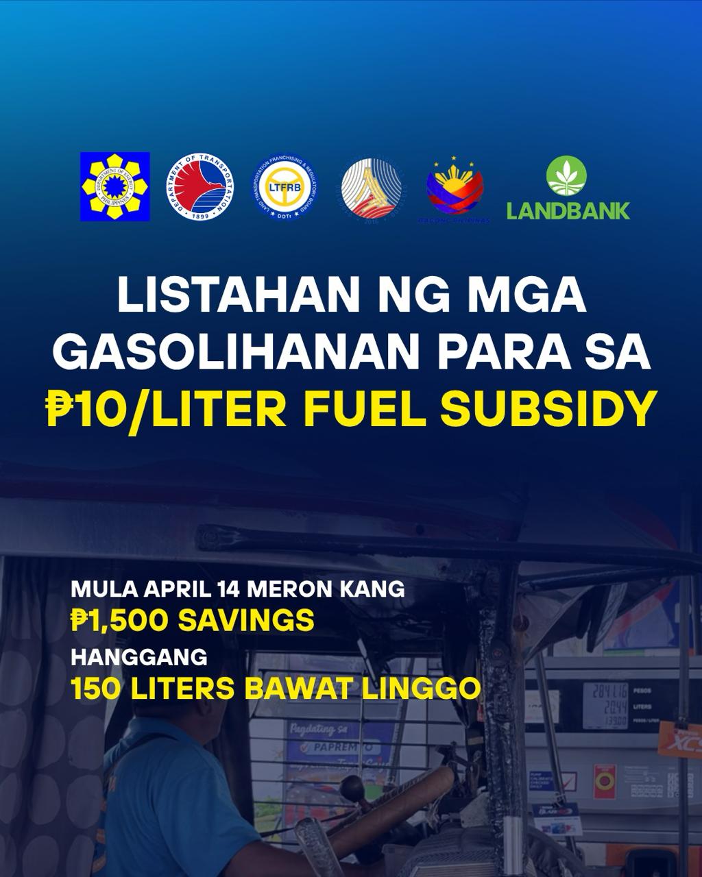 Sa ilalim ng programa, ang mga kwalipikadong public utility vehicle (PUV) driver ay maaaring makakuha ng P10 na diskuwento kada litro ng diesel, hanggang 150 litro kada linggo. Katumbas ito ng hanggang P1,500 na matitipid kada linggo.