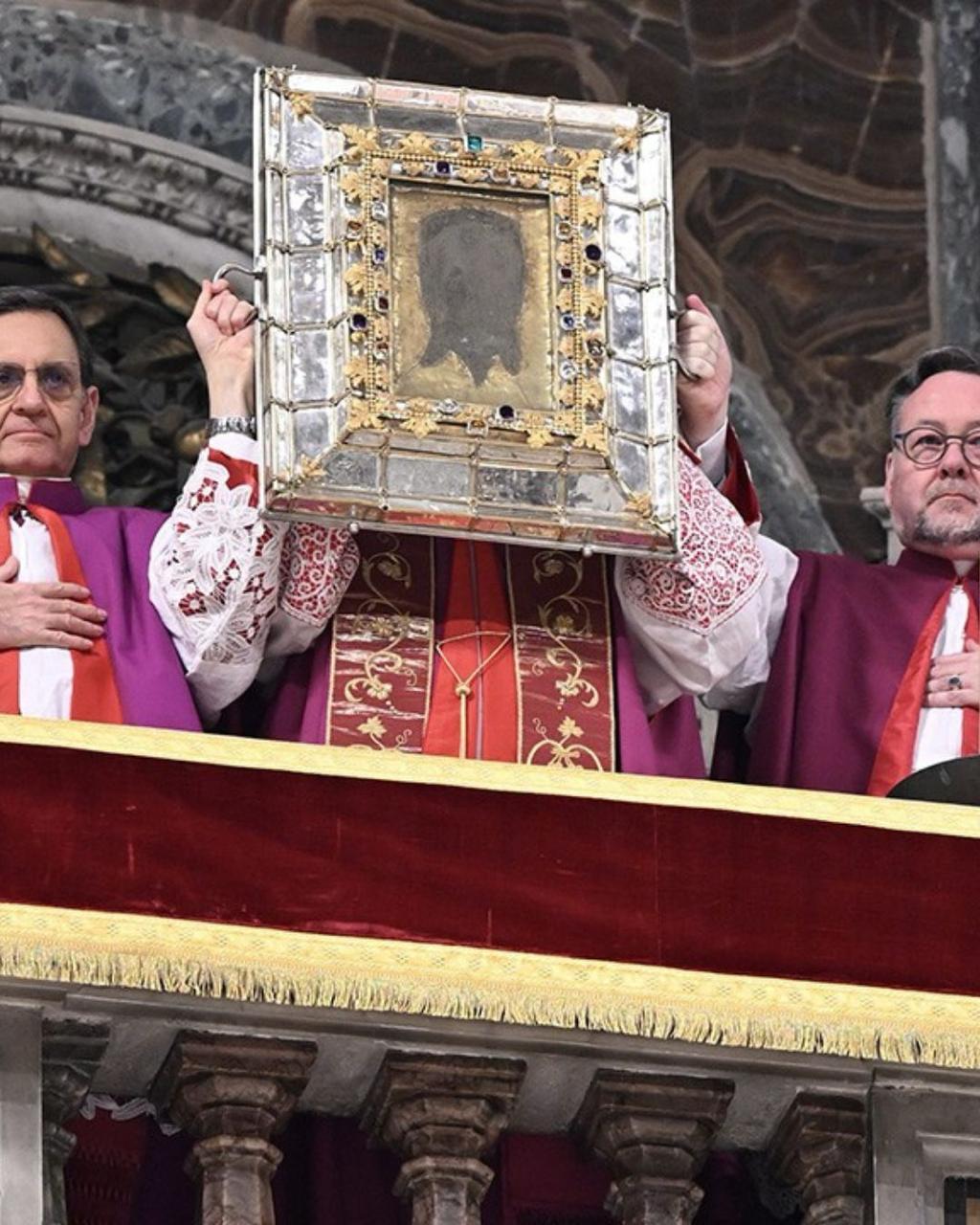 Ilang araw bago ang Holy Week, muling pinasilip sa publiko ang belo ni Sta. Veronica sa loob ng St. Peter’s Basilica sa Vatican.