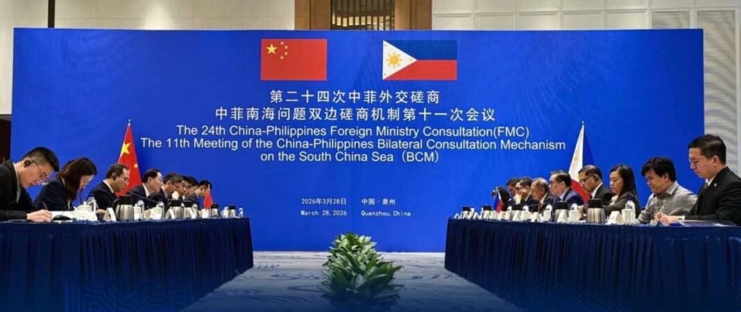 Pormal nang itinuloy ng Pilipinas at China ang usapan hinggil sa sitwasyon sa South China Sea sa diplomatic meetings na naganap sa Quanzhou City, Fujian Province noong March 27 at 28, ayon sa Department of Foreign Affairs (DFA).
