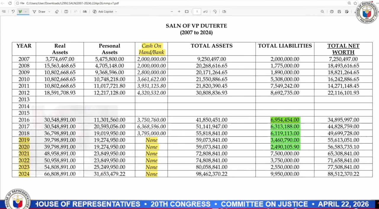 Ngunit hindi lang ang pagtaas ng yaman ang pinansin. Tinukoy rin ang pagkawala ng deklaradong cash assets matapos ang 2018.